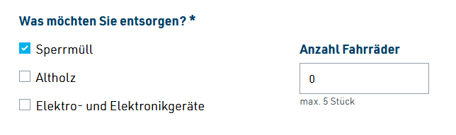 粗大ゴミにチェックをした時のみ、右側に自転車の個数の確認が出ます。あれば数を記入。最大5台まで。