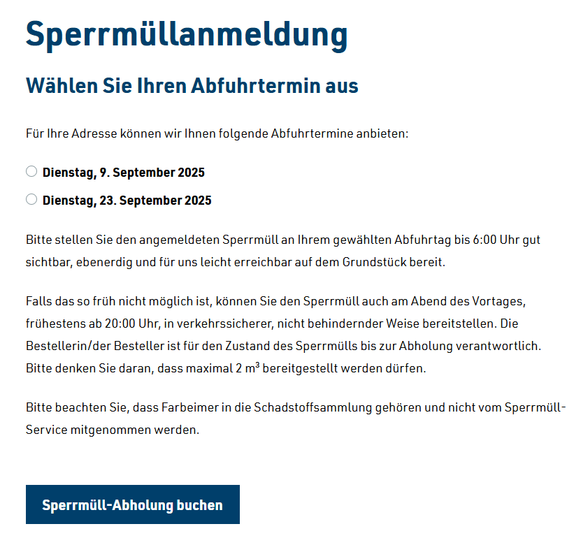 粗大ゴミ回収登録方法 (デュッセルドルフの場合)