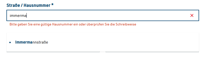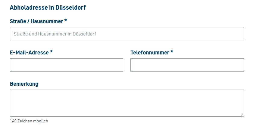 デュッセルドルフ市内の住所e-mailアドレス電話番号は必須項目。