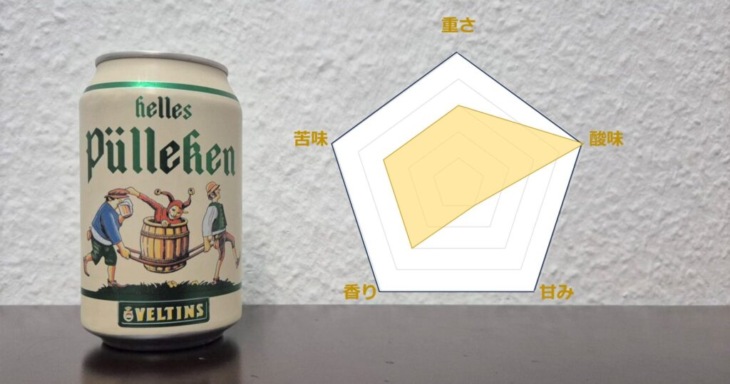甘みはほとんどなし。強い苦みと独特の酸味が後味に残る。しっかりとした飲み応えがある。レストランで飲むアルトビールと遜色ない。