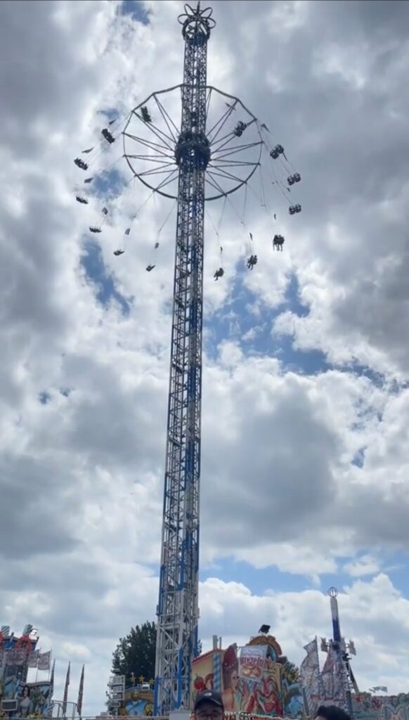 デュッセルドルフのキルメスの中で、一際目を引くアトラクション。地上73メートルまで上がる回転式の空中ブランコです。