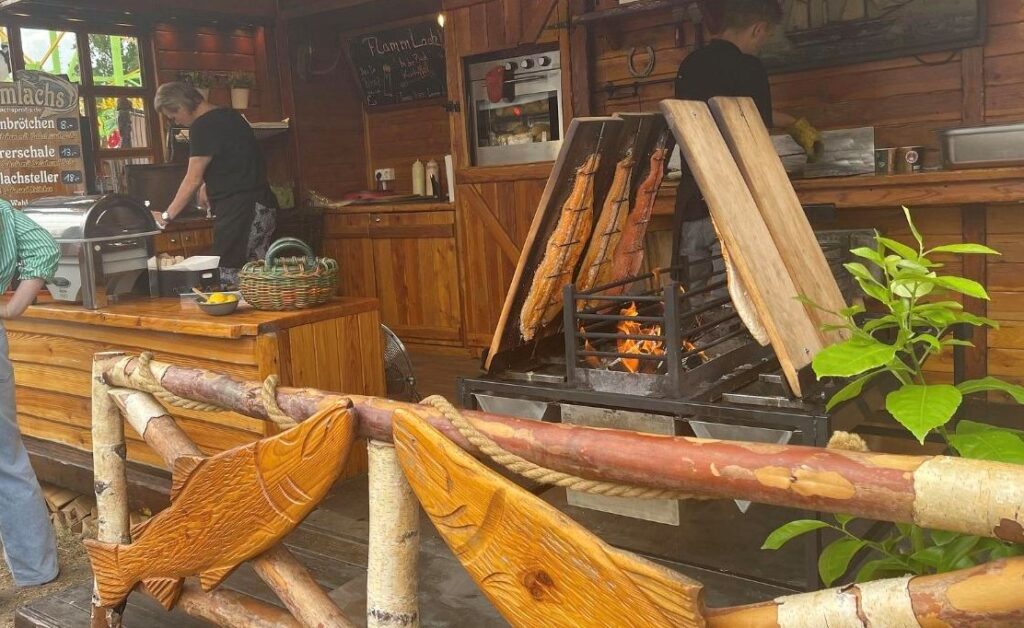 こちら、このようなイベントの際に見かけることがあります。直火で焼いております。風味が素晴らしく、ビールを一緒にいただくのが格別です。