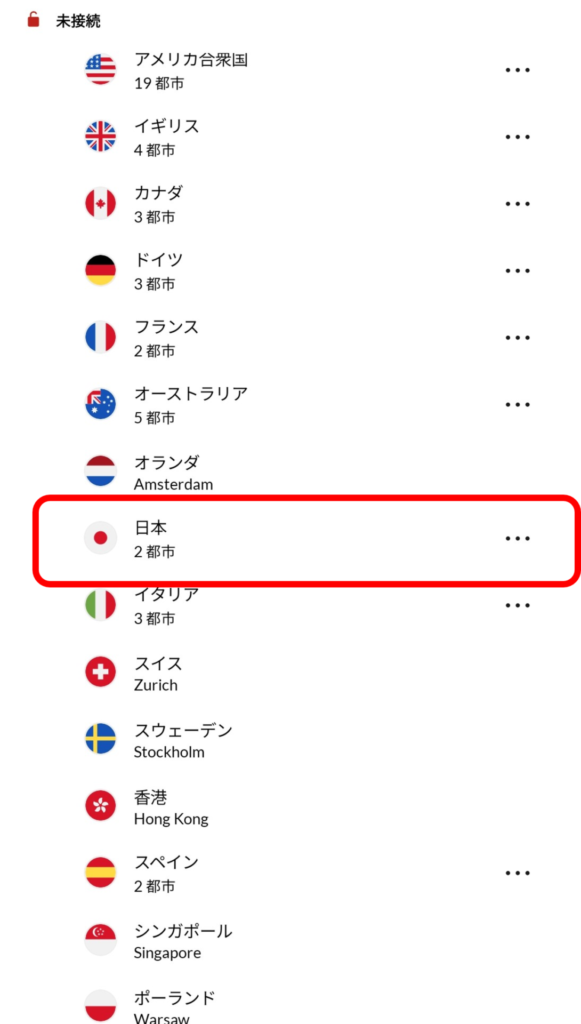 トップに戻っても、日本サーバーに接続しているのが確認できます。