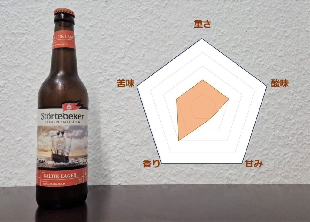 シュテルテベッカー・バルティック・ラガーは、天然の下面発酵ラガーで、原比重は13.2%です。提供温度:10℃。アルコール度数:5.5% vol.
