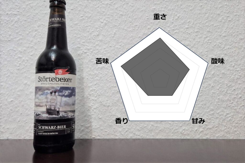 シュテルテベッカー・シュヴァルツ・ビアは、繊細なロースト風味を持つ天然下面発酵ビールです。ホップの風味が控えめで、スモークミートやムール貝との相性も抜群です。