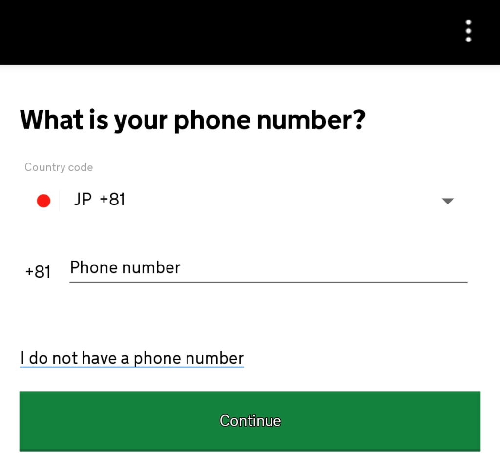 お持ちの電話番号を入力します。特にこの番号で何か行われるわけではなさそうでした。