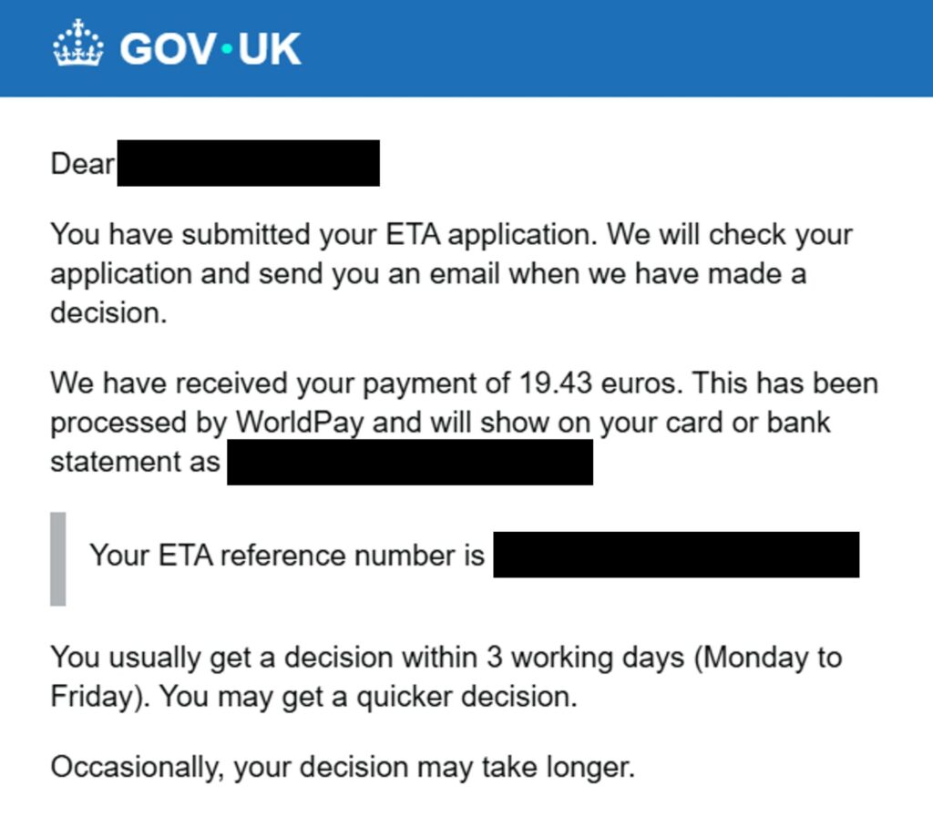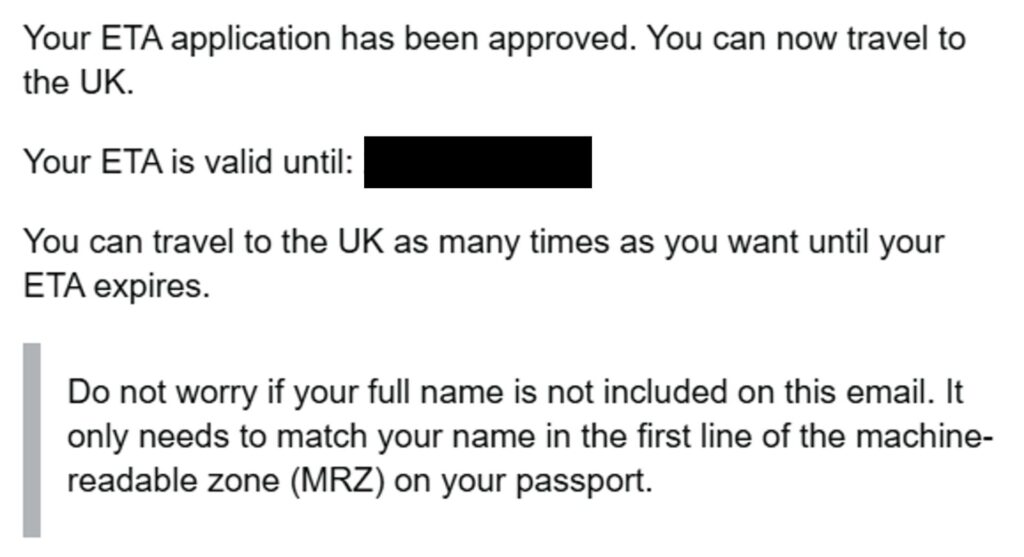 ETAの有効期限は2年間、またはパスポートの有効期限が切れるまでです。申請には一人16ポンドの費用がかかります。